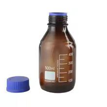 Bouteille de réactif de laboratoire en verre, bouchon à vis bleu, marron